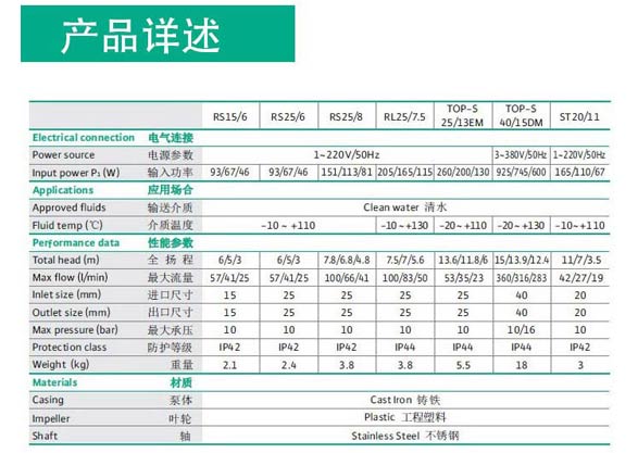 應(yīng)用:衛(wèi)生用水加速循環(huán),使 一開水龍頭就有熱水,二次熱水循環(huán)系統(tǒng)和類似的工業(yè)和建筑應(yīng)用。